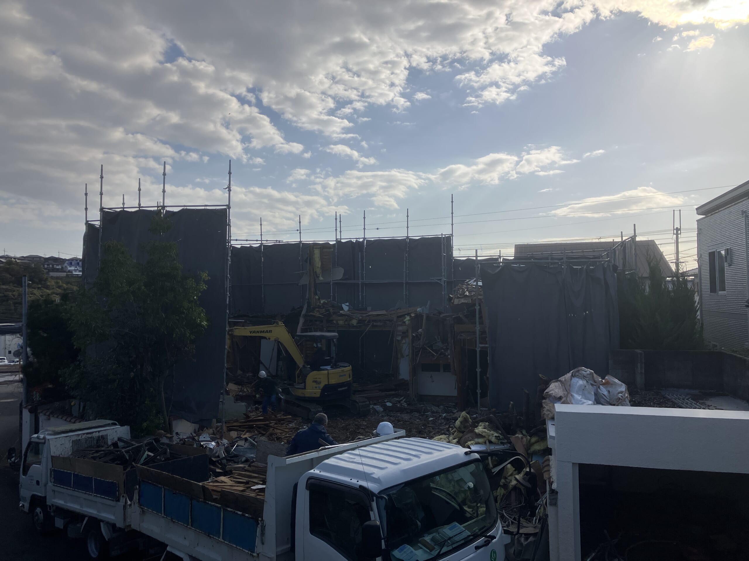駐車場造成へ向け、先般取得致しました物件の家屋解体に着手致しました。